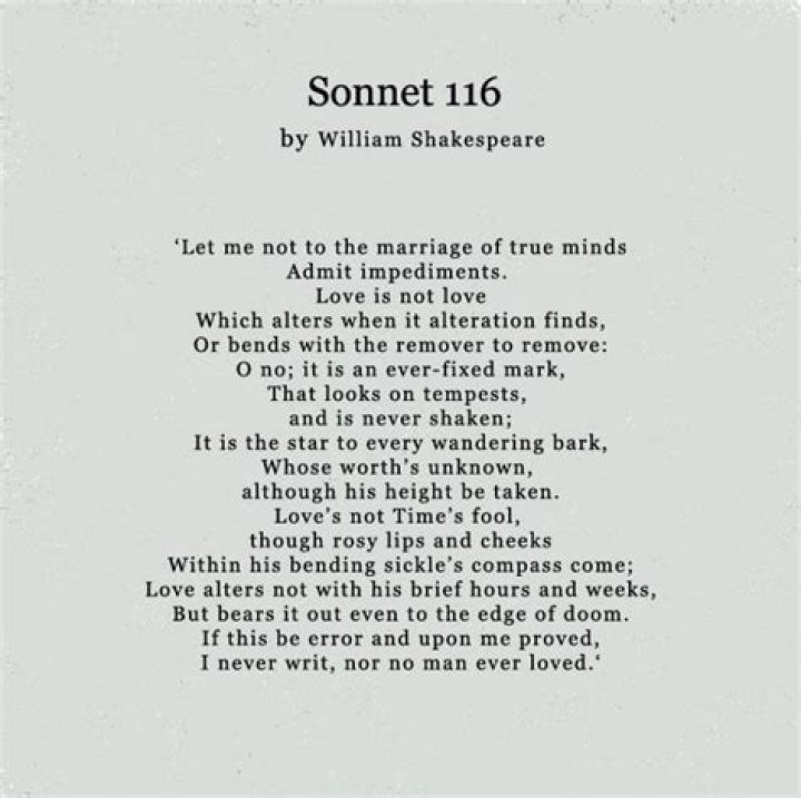 The first line of a sonnet by William Shakespeare. The poet is denying that anything can come between true lovers (that is, be an impediment to their love.)What is the message of the Sonnet 116?