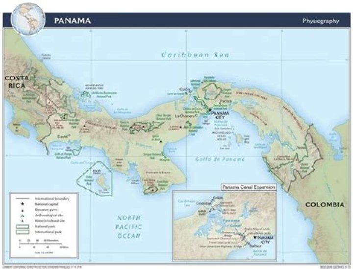 As observed on the physical map of Panama, the country’s landscape is dominated by forested, volcanic-in-origin, mountains that extend from its Costa Rican border to Colombia, South America. Significant ranges include the lengthy Central Mountains, as well as the San Blas, Talamanca, and Tabasara.