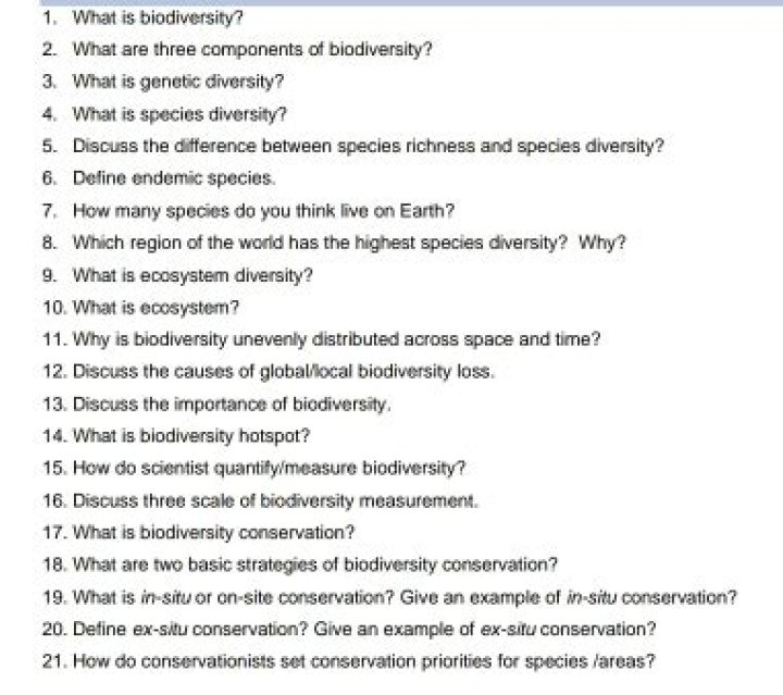 Answer: The three main components of species diversity are Genetic diversity, Ecological diversity, and species diversity.
