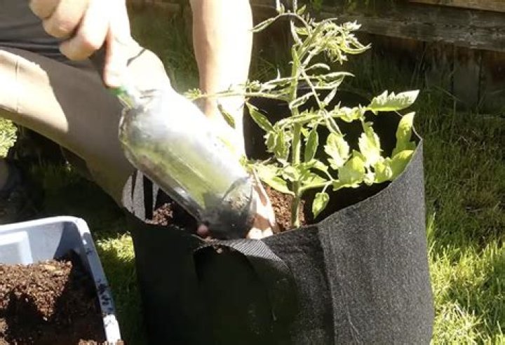 Grow bags for Tomatoes Just make some drainage holes in the bag, cut holes on the top and plant through them. … This is the bare minimum for growing tomatoes successfully. In hot weather with fully grown plants, these small grow bags may require watering three times a day to keep the compost moist.