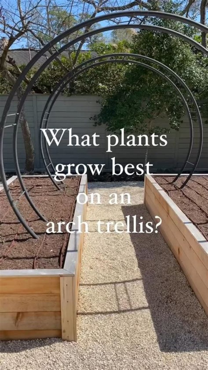 Metal garden arches are a strong trellis choice for heavy crops like vining squash, melons, gourds, cucumbers, and pole beans.