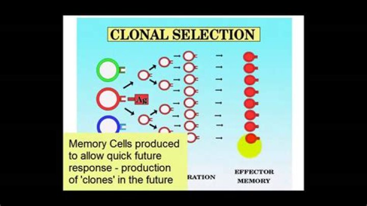 clonal selection. –antigenic-specific selection of a lymphocyte that activates it to produce clones of effector cells dedicated to eliminating the antigen that provoked the initial immune response. – one clone of cells consists of effector cells, another clone of cells consists of memory cells.