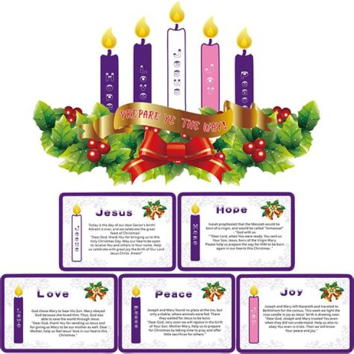 In many Catholic and Protestant churches, the most popular colours for the four surrounding Advent candles are violet (or blue) and rose, corresponding with the colors of the liturgical vestments for the Sundays of Advent.