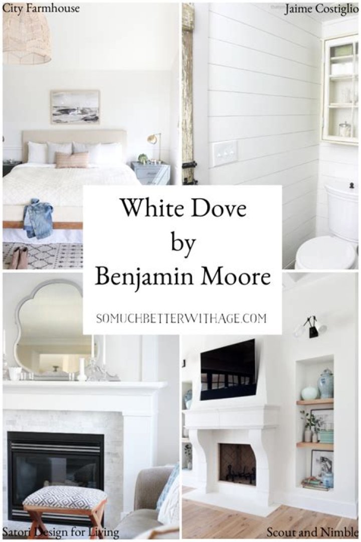 Almost any color looks so great with Dove White. Here’s a few top recommendations: You simply can’t go wrong with this light gray paint, Benjamin Moore Balboa Mist. Benjamin Moore Cape Hatteras Sand, Calm, Benjamin Moore Edgecomb Gray and Sea Salt also look perfect with White Dove.