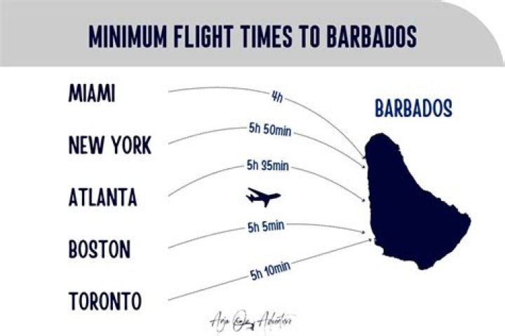 From North America, the four major gateways to Barbados are New York; Miami; Toronto; and San Juan, Puerto Rico. Flying time to Barbados is 4 1/2 hours from New York, 3 1/2 hours from Miami, 5 hours from Toronto, and 1 1/2 hours from San Juan. Virgin Atlantic Airways (tel.