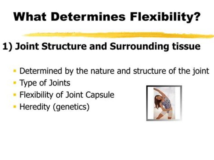 Many variables affect the loss of normal joint flexibility including injury, inactivity or a lack of stretching. The range of motion will be influenced by the mobility of the soft tissues that surround the joint. These soft tissues include: muscles, ligaments, tendons, joint capsules, and skin.