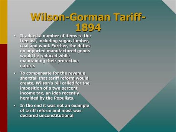 The Revenue Act or Wilson-Gorman Tariff of 1894 (ch. 349, §73, 28 Stat. 570, August 27, 1894) slightly reduced the United States tariff rates from the numbers set in the 1890 McKinley tariff and imposed a 2% tax on income