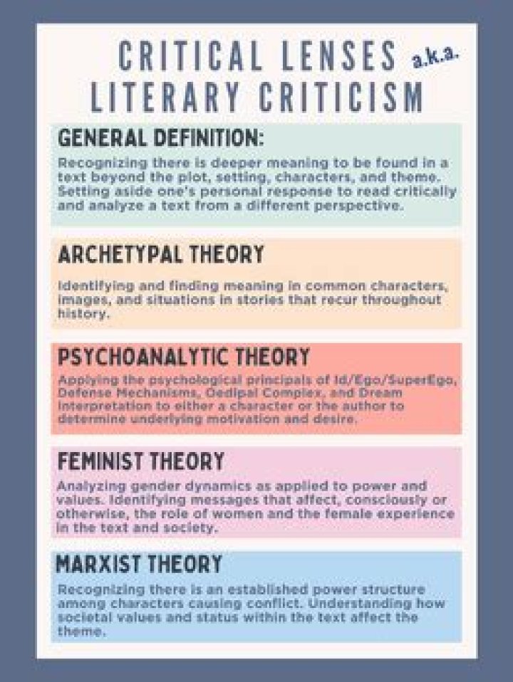 What is Literary Theory? “A very basic way of thinking about literary theory is that these ideas act as different lenses critics use to view and talk about art, literature, and even culture. These different lenses allow critics to consider works of art based on certain assumptions within that school of theory.