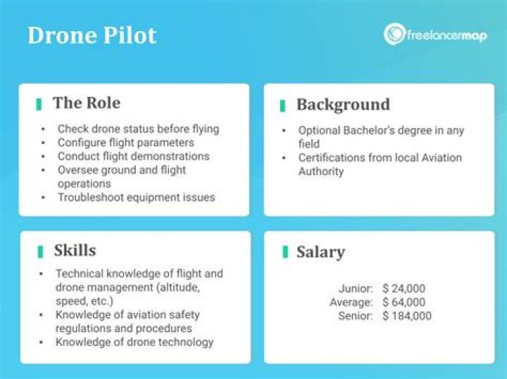 The average pay for a Drone Pilot is $69,259 a year and $33 an hour in California, United States. The average salary range for a Drone Pilot is between $49,180 and $85,678. On average, an Associate Degree is the highest level of education for a Drone Pilot.What education does a drone pilot need?