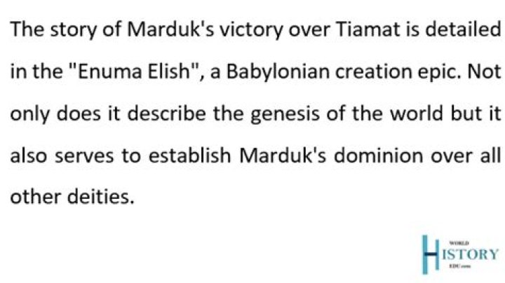 Marduk was the son of the god Ea and the grandson of Tiamat. He killed Tiamat to become the king god and made the earth and the heaven from Tiamat’s corpse. Q: Who discovered Enuma Elish? Enuma Elish was discovered in the 19th century by a self-taught working-class Englishman named George Smith.