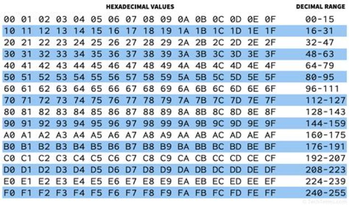 Numbering SystemBaseNotesHexadecimalbase 16Each Hexadecimal character represents 4 bits (0 – 15 decimal) which is called a nibble (a small byte – honest!). A byte (or octet) is 8 bits so is always represented by 2 Hex characters in the range 00 to FF.