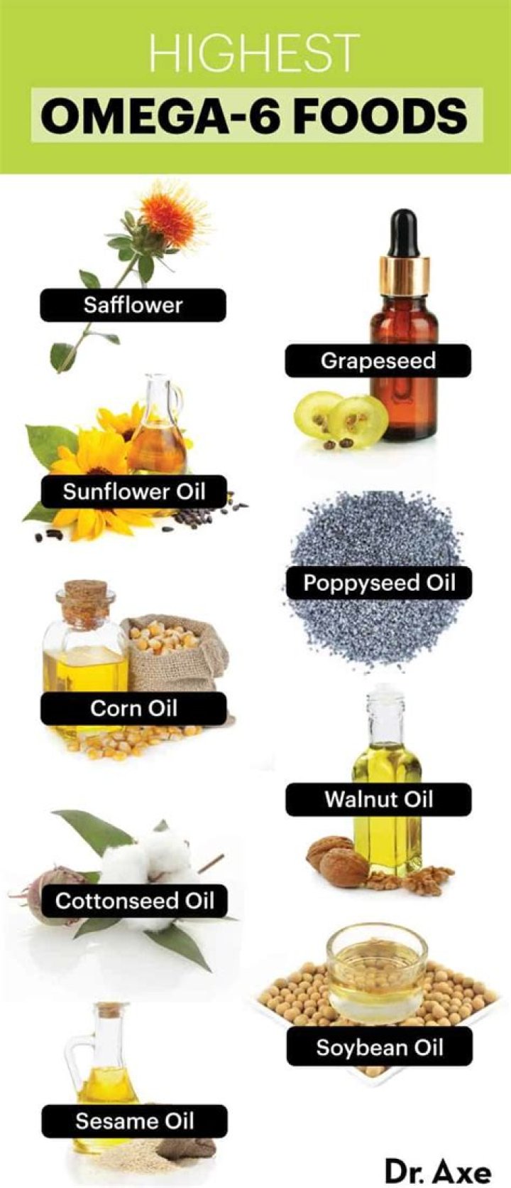 Foods high in omega-6 fats According to the Food and Nutrition Board of the U.S. Institute of Medicine, the adequate intake of omega-6s per day is 17 grams for males and 12 grams for females ages 19–50 years (39).