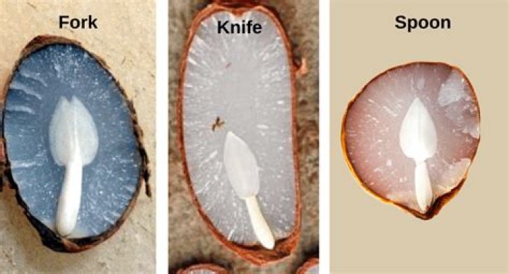 He slices the seed lengthwise to reveal the embryo and its unusual shape a white design on the dark seed. … If the design is a spoon, he says, it means mild weather; fork shapes denote the worst weather; and knives indicate weather with a few storms.