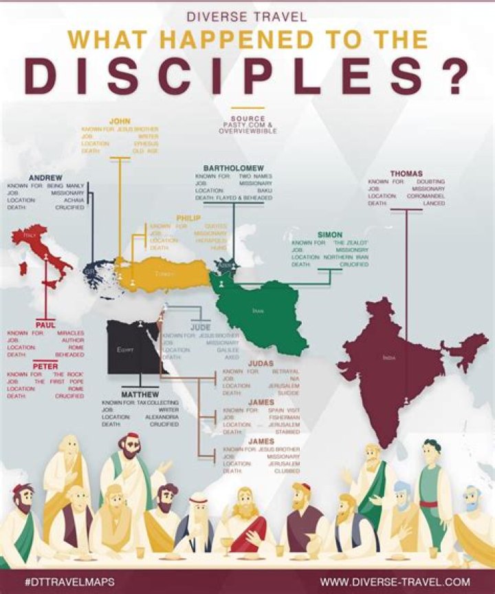 After Jesus’s death, the disciples became the Apostles (a Greek word that means “ones sent forth”) and Judas Iscariot, the betrayer of Jesus, was replaced by Matthias. According to Luke VI 12-13: Jesus “went out into a mountain to pray and continued all night in prayer to God.