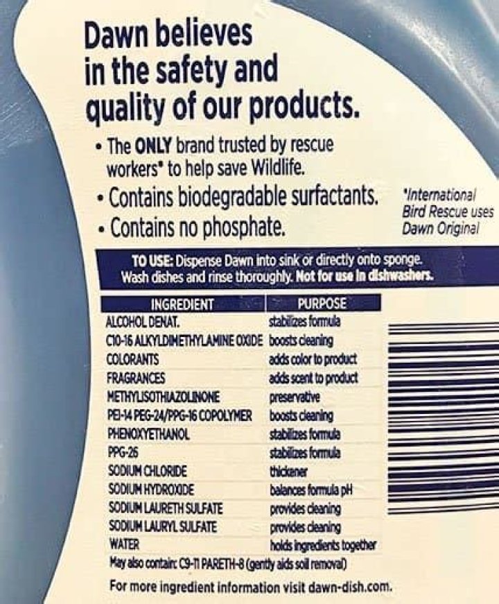 The Environmental Working Group gave Dawn a ‘D’ grade because of it containing methylisothiazolinone, which is a “High Concern: acute aquatic toxicity; Some Concern: skin irritation/allergies/damage”. … Dawn also contains 1 4-dioxane which is considered a groundwater contaminant.