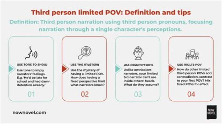 Third person limited is where the narrator can only reveal the thoughts, feelings, and understanding of a single character at any given time — hence, the reader is “limited” to that perspective. For instance: “She couldn’t tell if the witness was lying.”