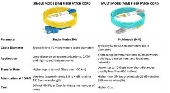 single mode fiber is designed to propagate a single light mode whereas multimode supports multiple simultaneous light modes. This difference impacts bandwidth, signal transmission distance and signal stability which we’ll explore later.