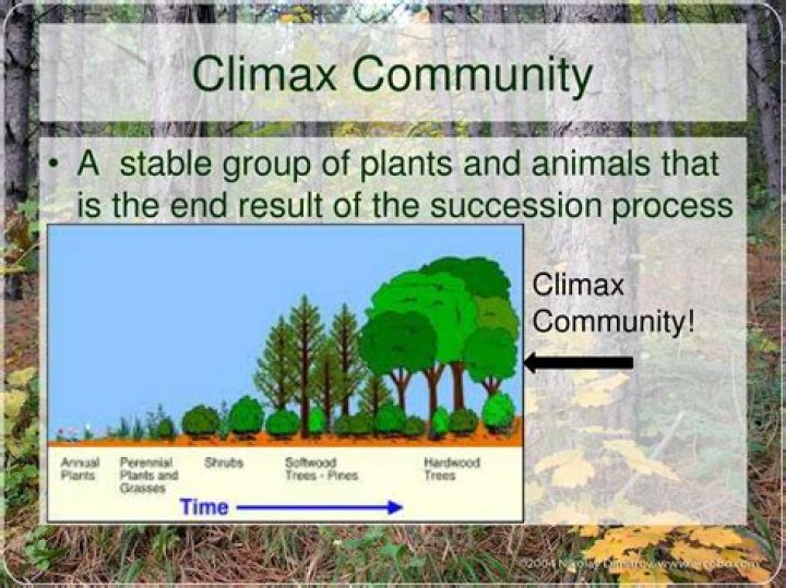 Explanation: A climax community is a term used to express a community in its final stage of succession. Species composition is stable, and the community has reached equilibrium. This often takes thousands and possibly millions of years.