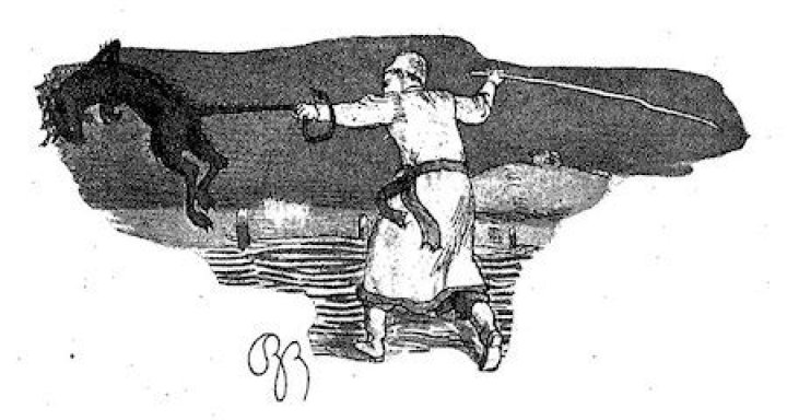 The Horse-courser assumes Faustus is trying to cheat him and rides it in water; the horse promptly melts.