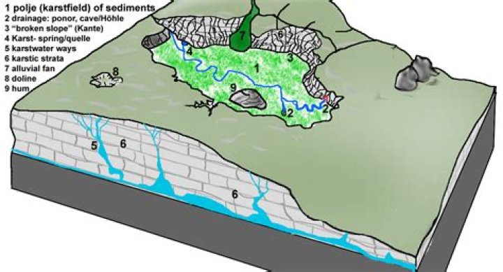 Usually covered with thick sediments, called “terra rossa”, they are used extensively for agricultural purposes. Some poljes of the Dinaric Alps are inundated during the rainy winters and spring seasons as masses of water called izvor or vrelo appears at the margins.