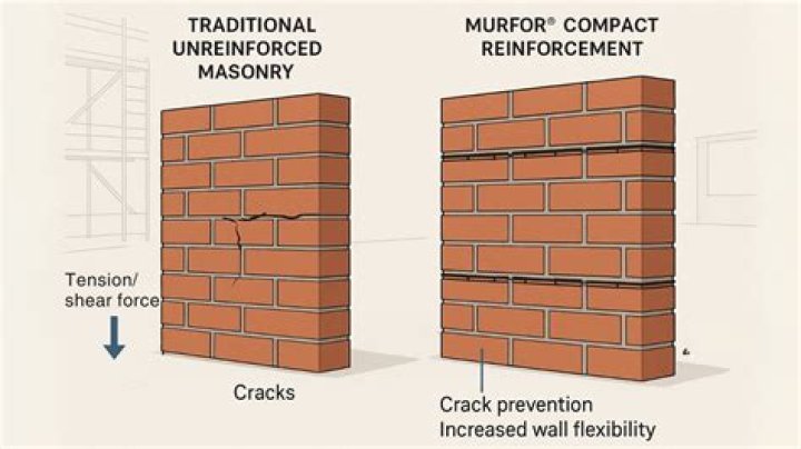 Reinforcement in construction is to provide tensile strength to the concrete structures. Ordinary brick masonry cannot withstand tensile stresses because bricks get pulled apart at the mortar joints, in such situations, brick masonry is reinforced by steel flats, steel bars or expanded bars.