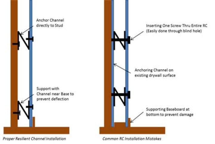 Hanging RC Over Existing Drywall: When adding a 2nd layer of drywall, this should be done on the other side of the wall. If the resilient channel is installed directly over drywall (rather than studs), it creates a mass-air-mass condition that greatly reduces its effectiveness.Can you install resilient channel over existing drywall?