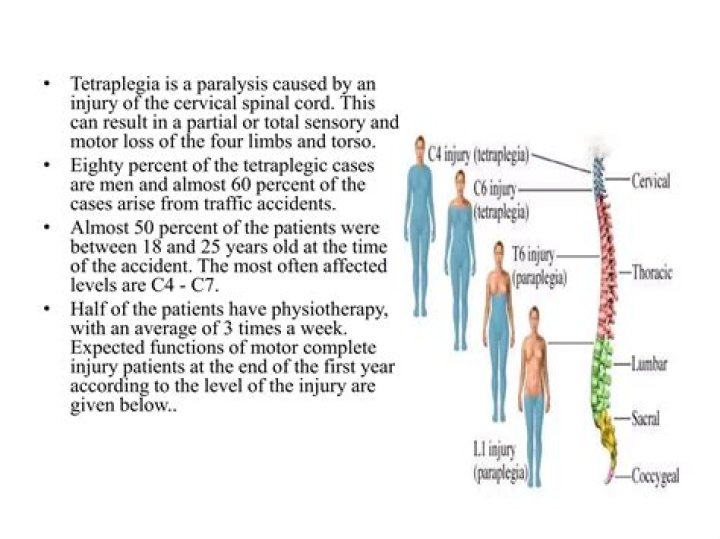 Tetraplegia is a paralysis caused by an injury of the cervical spinal cord. This can result in a partial or total sensory and motor loss of the four limbs and torso. The injuries that occur above level C4 often result in respiratory deficiency.