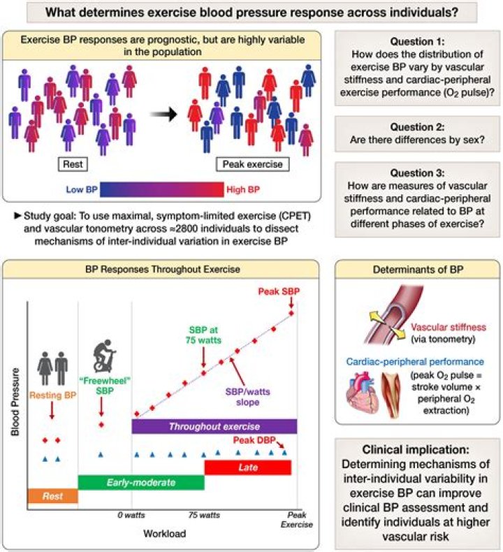 Normally during exercise, blood pressure increases to push the flow of oxygen-rich blood throughout the body. However, in some individuals, the response to exercise is exaggerated. Instead of reaching a systolic (upper number) blood pressure of around 200 mmHg at maximal exercise, they spike at 250 mmHg or higher.