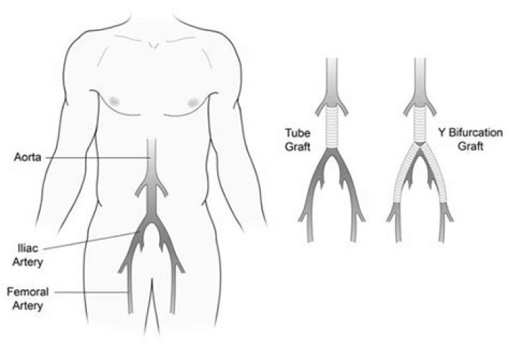 Aortobifemoral bypass surgery is used to bypass diseased large blood vessels in the abdomen and groin. To bypass a narrowed or blocked blood vessel, blood is redirected through a graft made of synthetic material (such as polytetrafluoroethylene [PTFE] or Dacron).