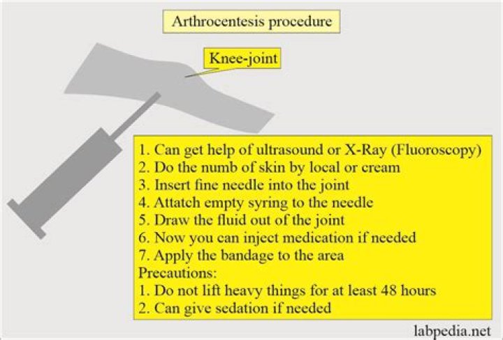 Joint aspiration is a procedure to remove excess fluid through a needle from a joint (commonly a knee, ankle, elbow or hip). Joint injection involves injecting medications, such as corticosteroids, into the joint to relieve pain.How do I get rid of fluid in my joints?