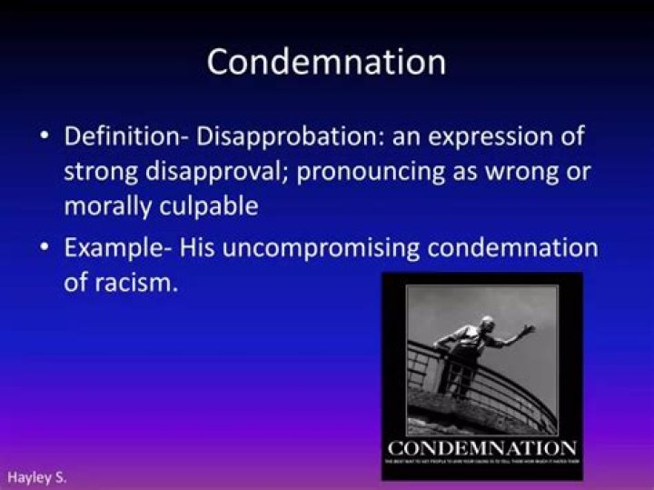 transitive verb. 1 : to declare to be reprehensible, wrong, or evil usually after weighing evidence and without reservation a policy widely condemned as racist. 2a : to pronounce guilty : convict. b : sentence, doom condemn a prisoner to die.