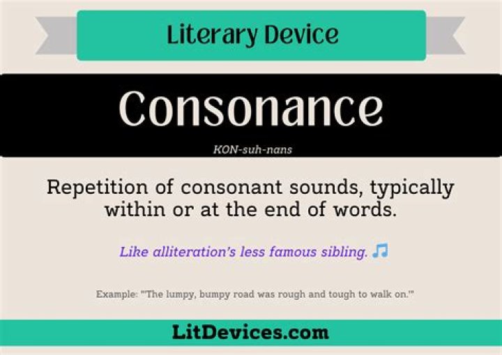 - Consonance. Consonance refers to the repeated consonant sounds at the beginning, middle or end of a word. …