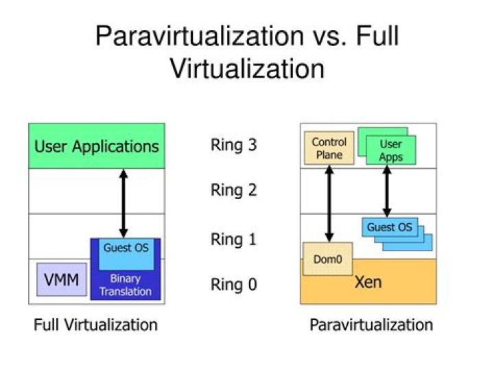 The main difference between full virtualization and paravirtualization in Cloud is that full virtualization allows multiple guest operating systems to execute on a host operating system independently while paravirtualization allows multiple guest operating systems to run on host operating systems while communicating …What is the advantage of para virtualization over full virtualization?