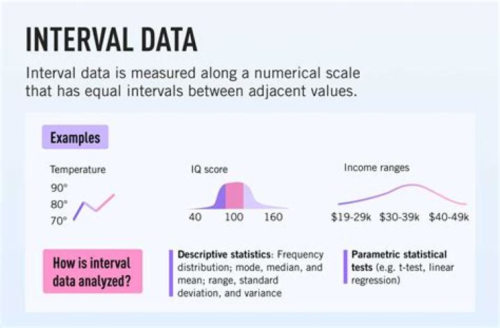 Interval data is measured along a numerical scale that has equal distances between adjacent values. These distances are called “intervals.” There is no true zero on an interval scale, which is what distinguishes it from a ratio scale.