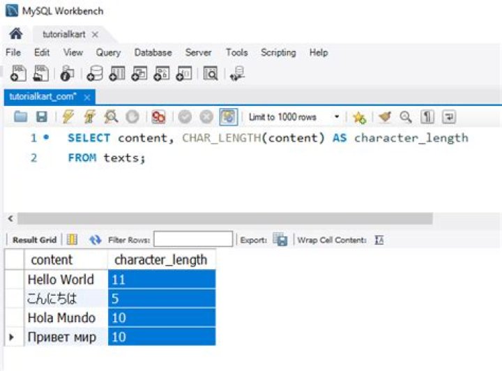 MySQL CHAR_LENGTH() returns the length (how many characters are there) of a given string. The function simply counts the number characters and ignore whether the character(s) are single-byte or multi-byte.What is the maximum varchar length in MySQL?