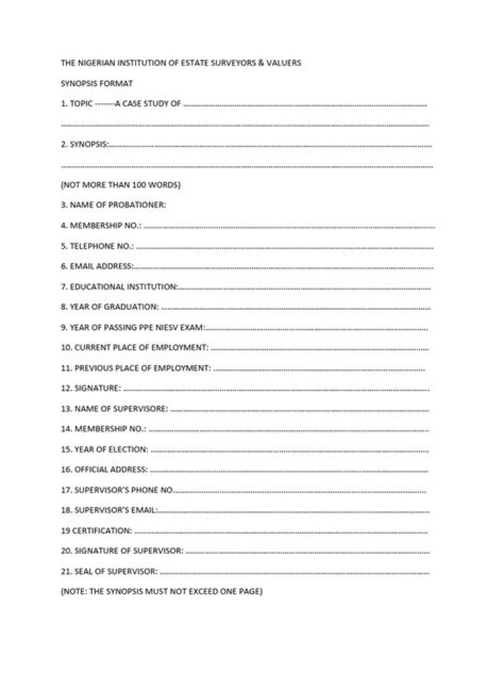 1) A degree or Diploma in Estate Management and Valuation. 2) Be a member of the Royal Institution of Chartered Surveyors (RICS), at Associate level for not less than five (5) years.