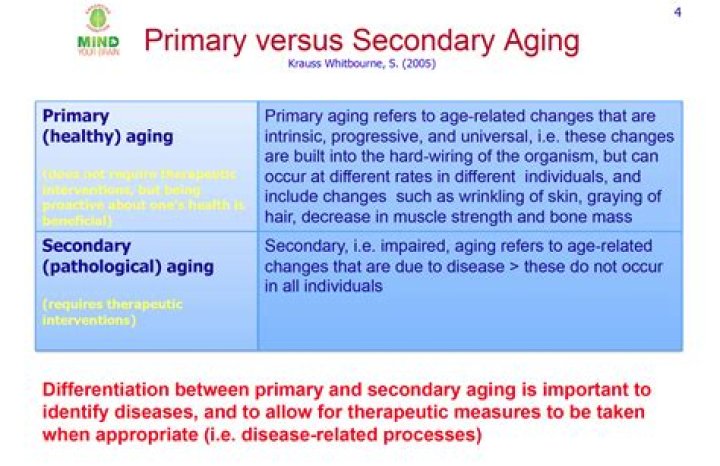 Scientists associate age-related changes like vision, graying hair, and wrinkles as key examples of primary aging.What are types of aging?