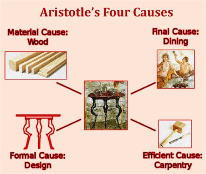 Aristotle’s very ancient metaphysics often centered on the four causes of being. They are the material, formal, efficient, and final cause. According to Aristotle, the material cause of a being is its physical properties or makeup. … And the final cause is the ultimate purpose for its being.