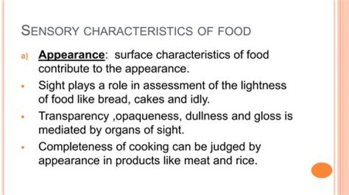 Beyond taste, sensory properties such as smell, sound, appearance and texture influence what we select to eat. Food must taste delicious, certainly, but mouthfeel, texture, looks and smell are also important to the overall eating experience.What are the 3 main sensory characteristics of food products?