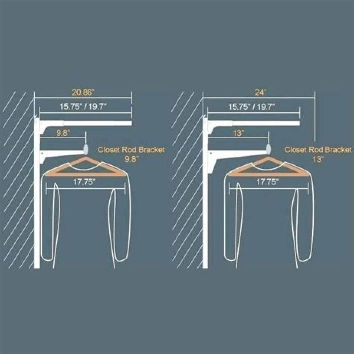 It should be placed in front of a stud so you can screw into the stud to give it support. The typical height of a closet rod is from 60 to 80 inches, and both brackets should be at the same height, or the hooks you hang from the rod will slid