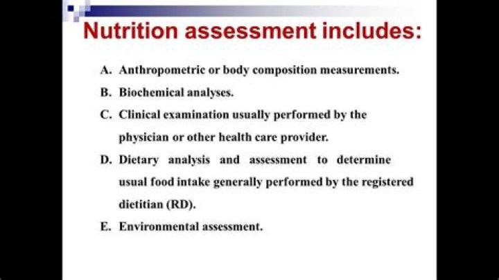 Nutritional assessment is the interpretation of anthropometric, biochemical (laboratory), clinical and dietary data to determine whether a person or groups of people are well nourished or malnourished (over-nourished or under-nourished).