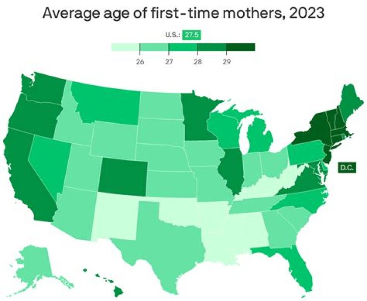 How old is the average first-time mother in the US?