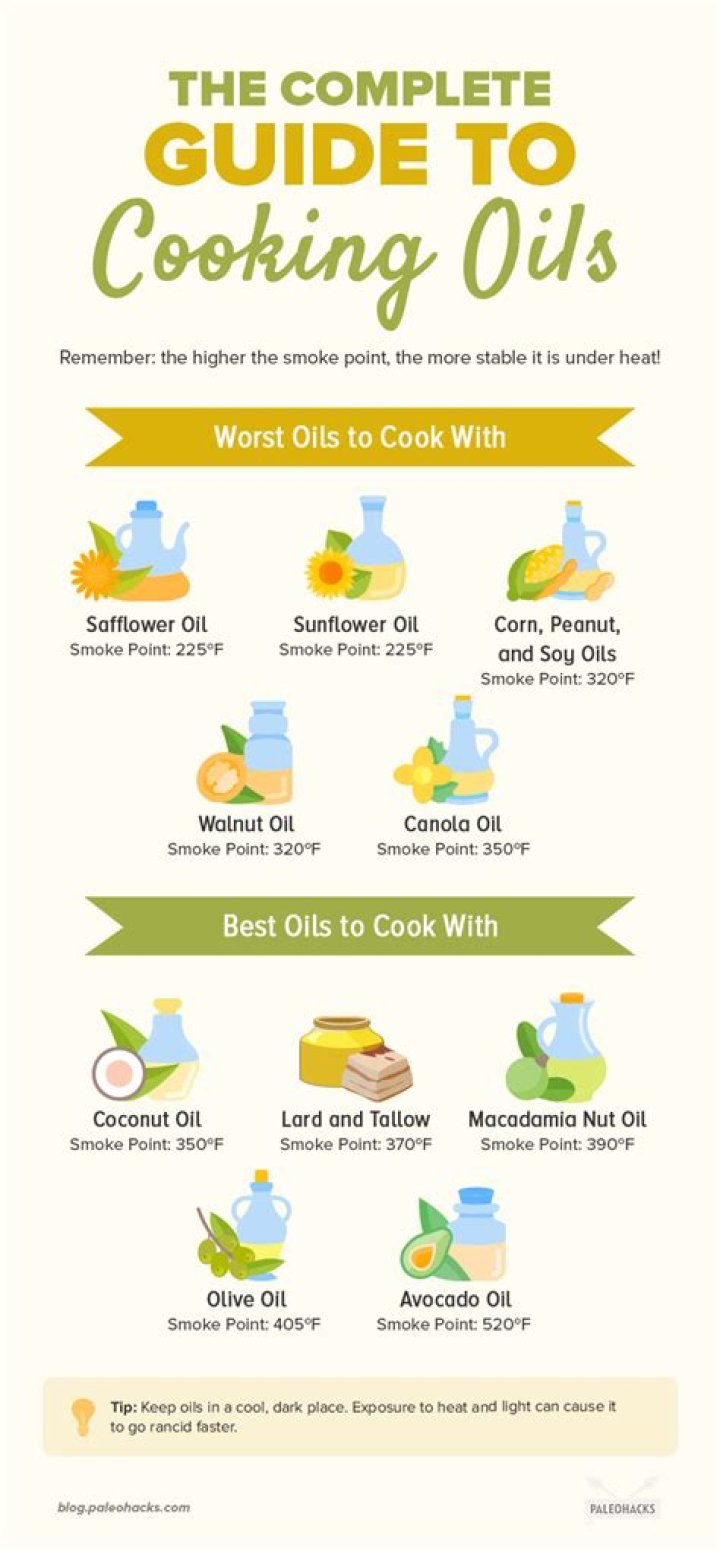 The oils which should be avoided for cooking are oils like soybean, corn, canola, sunflower, and safflower. These oils have unstable fats and will decimate the nutritional properties of your food. Oh, and they’ll give you a big fat health risk in the meantime.What's the healthiest oil to fry in?