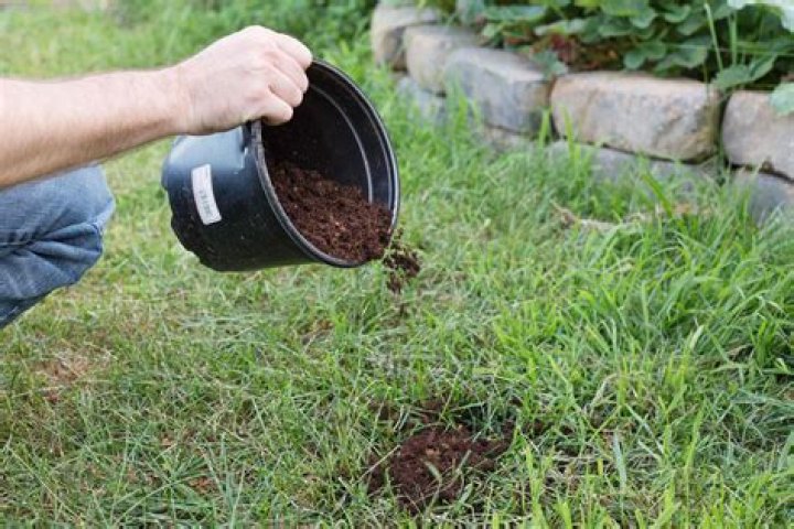 Spread the soil using something flat, like the back side of a heavy garden rake, working it into aeration holes and covering low spots. Make sure the top-dressing is no more than 1” deep (preferably ½” or less) over the existing grass. Keep working the mixture until your grass peeks through and the depth is even.