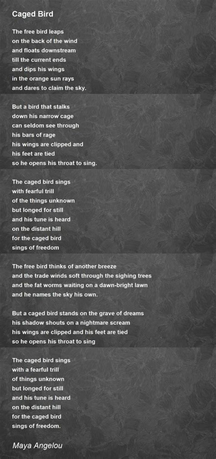 The tone of I Know Why the Caged Bird Sings is at times loving, at times wry, and sometimes indignantly angry. The mood flits between slice of life and tragic, at ease and anxious.What is the mood of a poem?