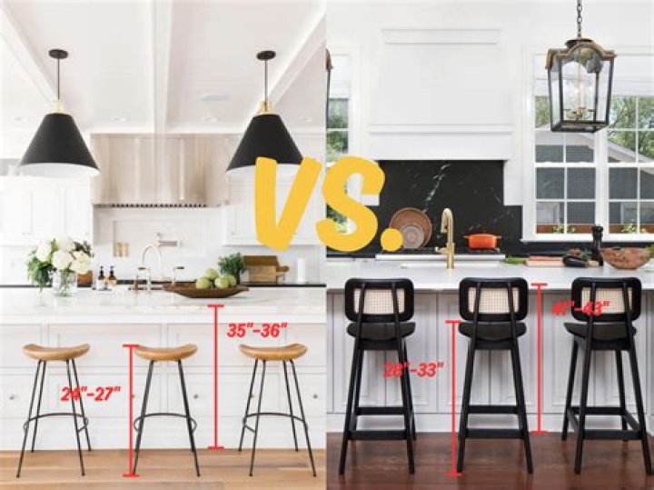 Counter stool height: Countertops range from 36 to 39 inches, so you’ll need a counter stool that ranges from 24 to 26 inches high. Bar stool height: Bar tops are usually around 40 to 42 inches high, so opt for a bar stool about 28 to 30 inches tall.