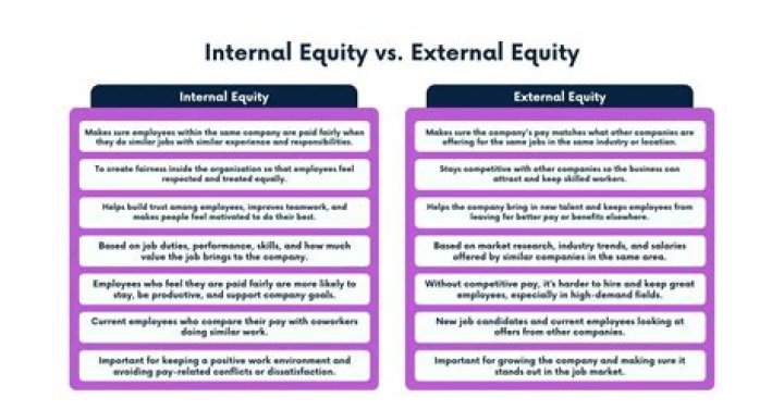 External equity refers to the employee’s perception of being treated in the same way. as employees in the same job but at a competing organization, while internal equity. refers to the employee’s perception of being treated in the same way as employees within.