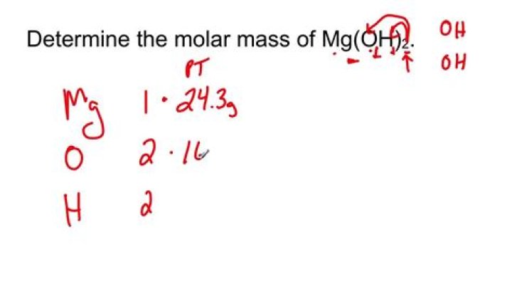 The molar mass of Mg(OH)2 is 58.33 g/mol. The molar mass of magnesium is 24.31 g/mol. The molar mass of oxygen is 16.00 g/mol, but since there are…