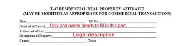 Where can I get a T-47? You can get one from your title company, the Texas Department of Insurance or your agent can provide you with the Texas Association of Realtors version of the form, like this TAR 1907 Residential Real Property Affidavit sample.