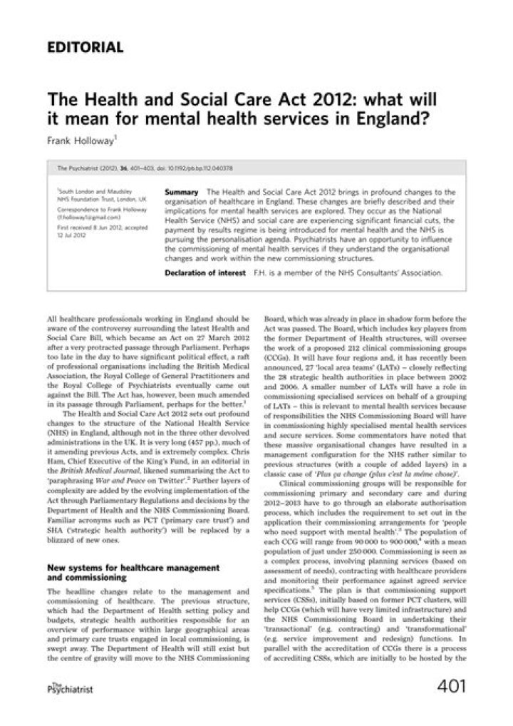 Who wrote the Health and Social Care Act 2012?